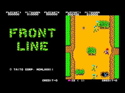 『フロントライン(Front Line)』は、アーケード(AC)で登場した固定画面シューティングゲーム。プレイヤーは歩兵からタンクへ乗り換え、敵基地を制圧するという独自の戦略体験を楽しめます。